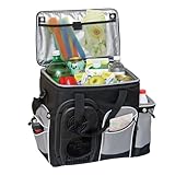 No more ice to lug around in the cooler, this soft-sided electric cooler plugs into the car\'s 12 volt cigarette lighter or into any standard outlet keep things cool on the move.Sandwiches, snacks, beverages, and heat sensitive medicines are cooled to 30 degrees F below ambient temperature. Great for road trips, picnics, hotel and office use (with optional AC adapter), the cooler\'s soft exterior shell is made of durable nylon. A zippered compartment on top lets you keep your favorite snacks up top for quick access. More great features include an adjustable shoulder strap, an external zippered pocket for storage, a mesh side pocket, an exterior beverage holder and a bungee cord for strapping down just about anything to the lid. The cooler also has a storage pocket to hide away the 12V cord on the go.